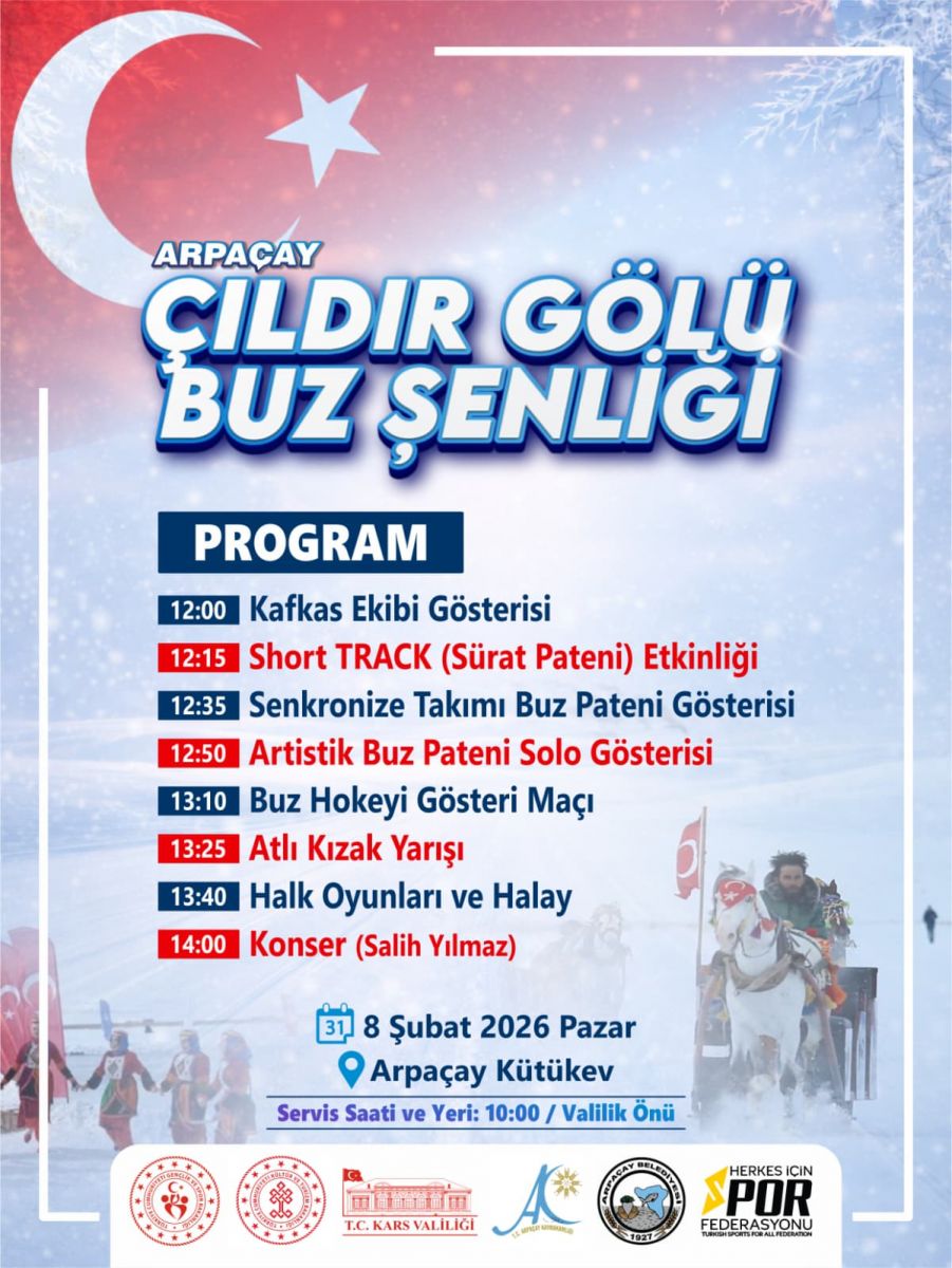 Arpaçay Çanaksu Kütük Ev Mevkiinde düzenlenecek olan “Çıldır Gölü Buz Şenliği”ne tüm gösterilerimiz davetlidir.