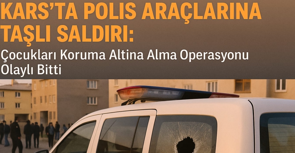 Kars’ın Halitpaşa Mahallesi’nde polis ekipleri, mahkeme kararıyla üç çocuğu koruma altına almak için gittikleri evde aile bireylerinin taşlı saldırısına uğradı. Saldırıda polis aracının camları kırılırken, olay bölgesinde kısa süreli gerginlik yaşandı.