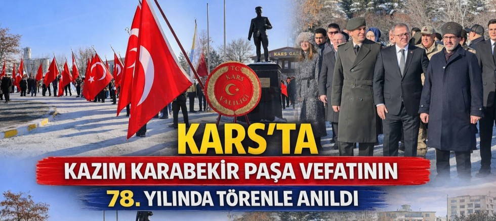 Doğu Cephesi Komutanı ve Kars’ın kurtarıcısı Kazım Karabekir Paşa’nın vefatının 78. yıl dönümü dolayısıyla Kars’ta anlamlı bir anma töreni düzenlendi. Gazi Kars Tren Garı’nda gerçekleştirilen programa, protokol üyeleri, kamu kurum temsilcileri ve vatandaşlar yoğun ilgi gösterdi.